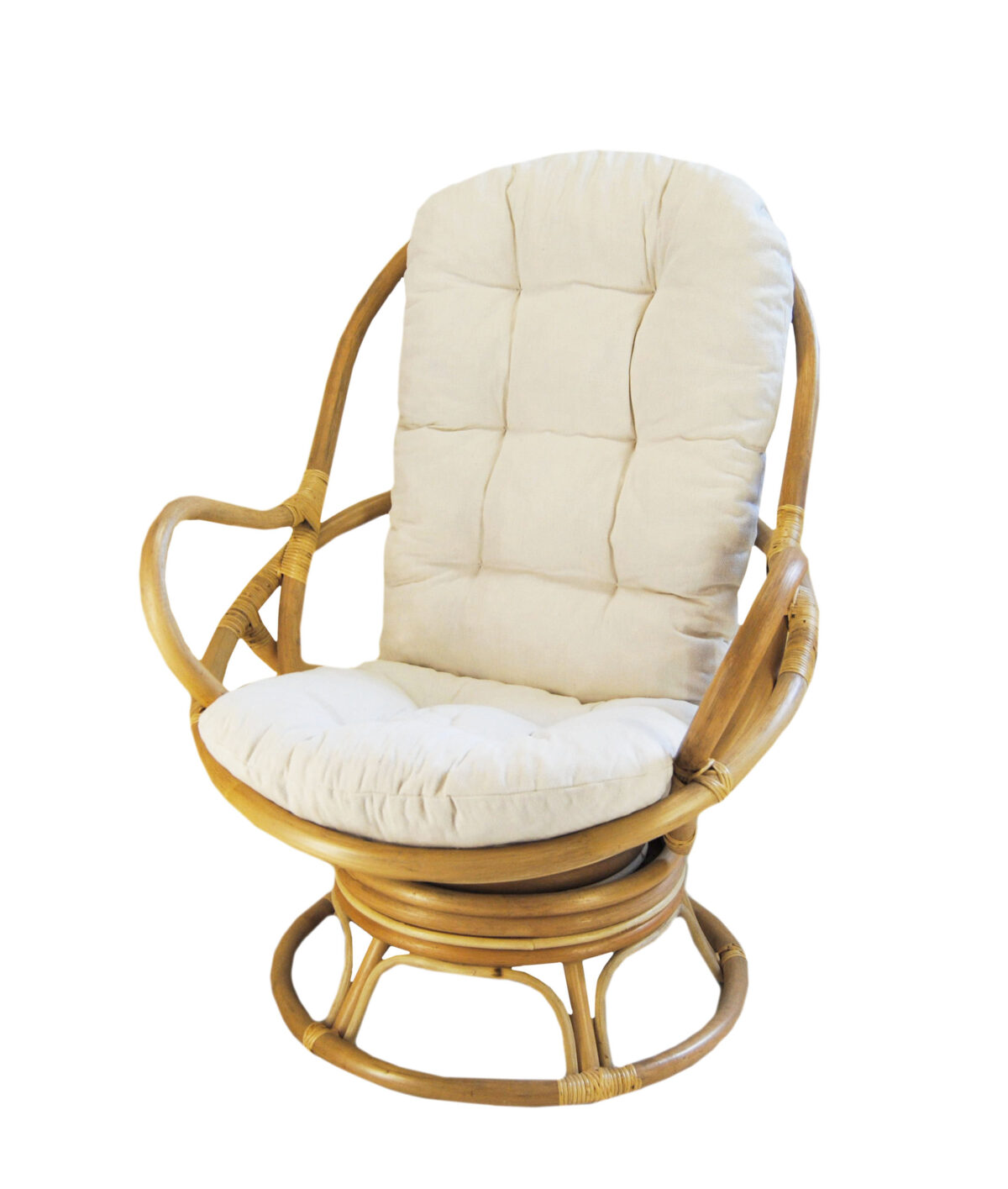 Draaistoel in Naturel rotan inclusief een ecru kussen
