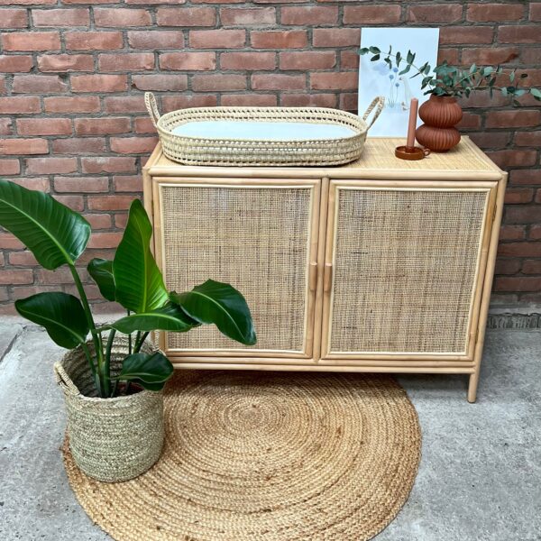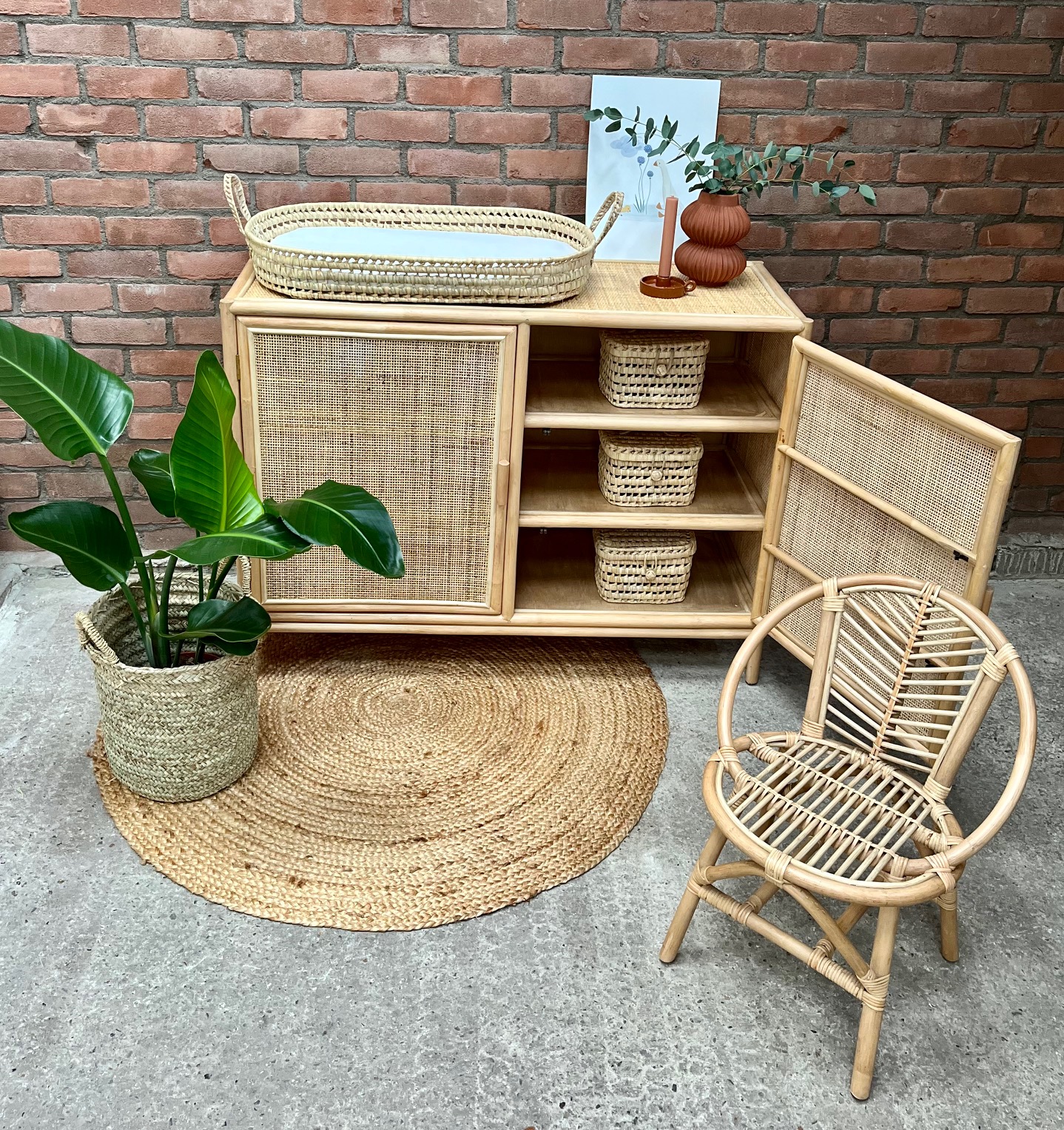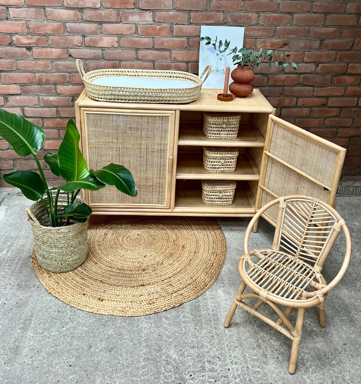 Hip dressoir, handgemaakt van naturel rotan en open webbing.