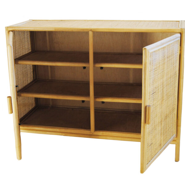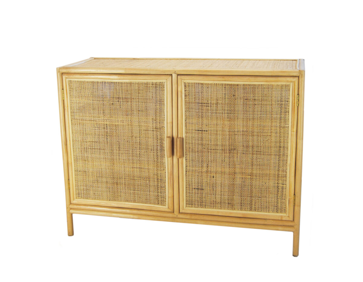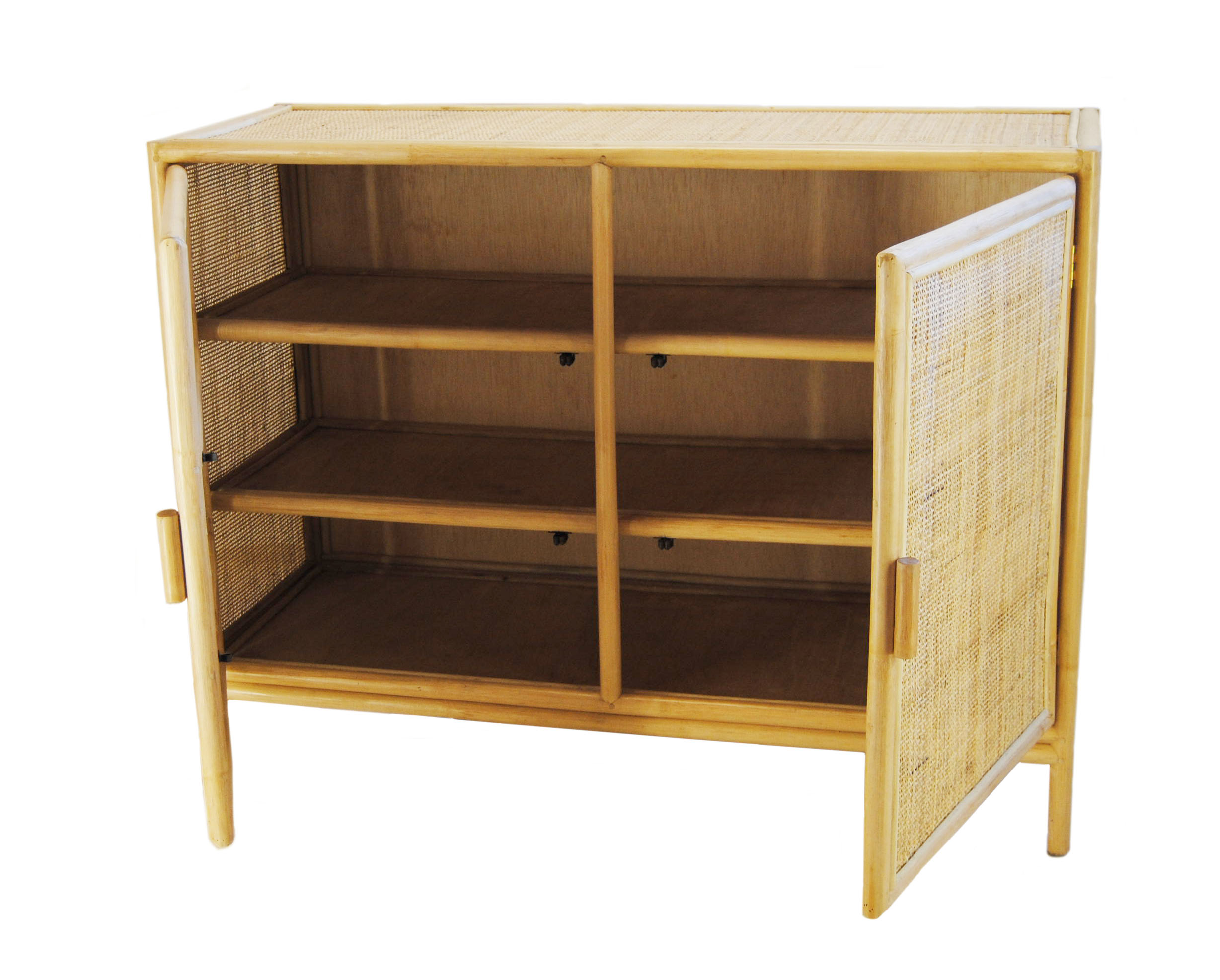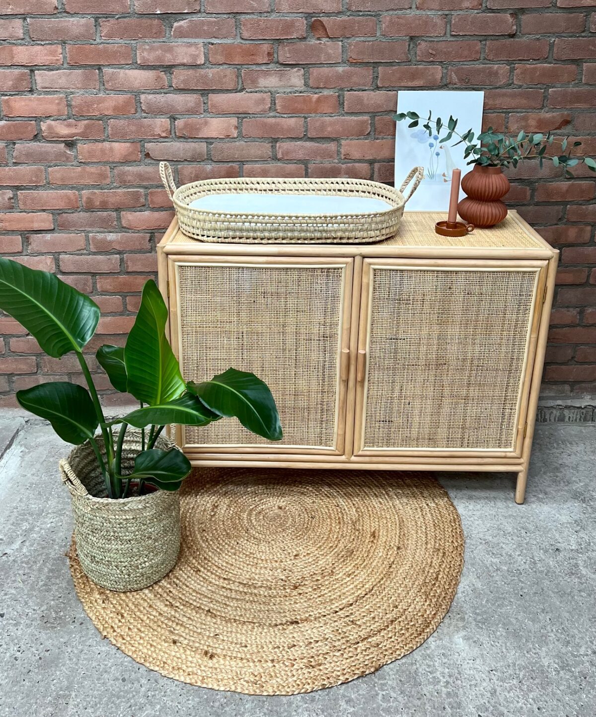 Hip dressoir, handgemaakt van naturel rotan en open webbing.