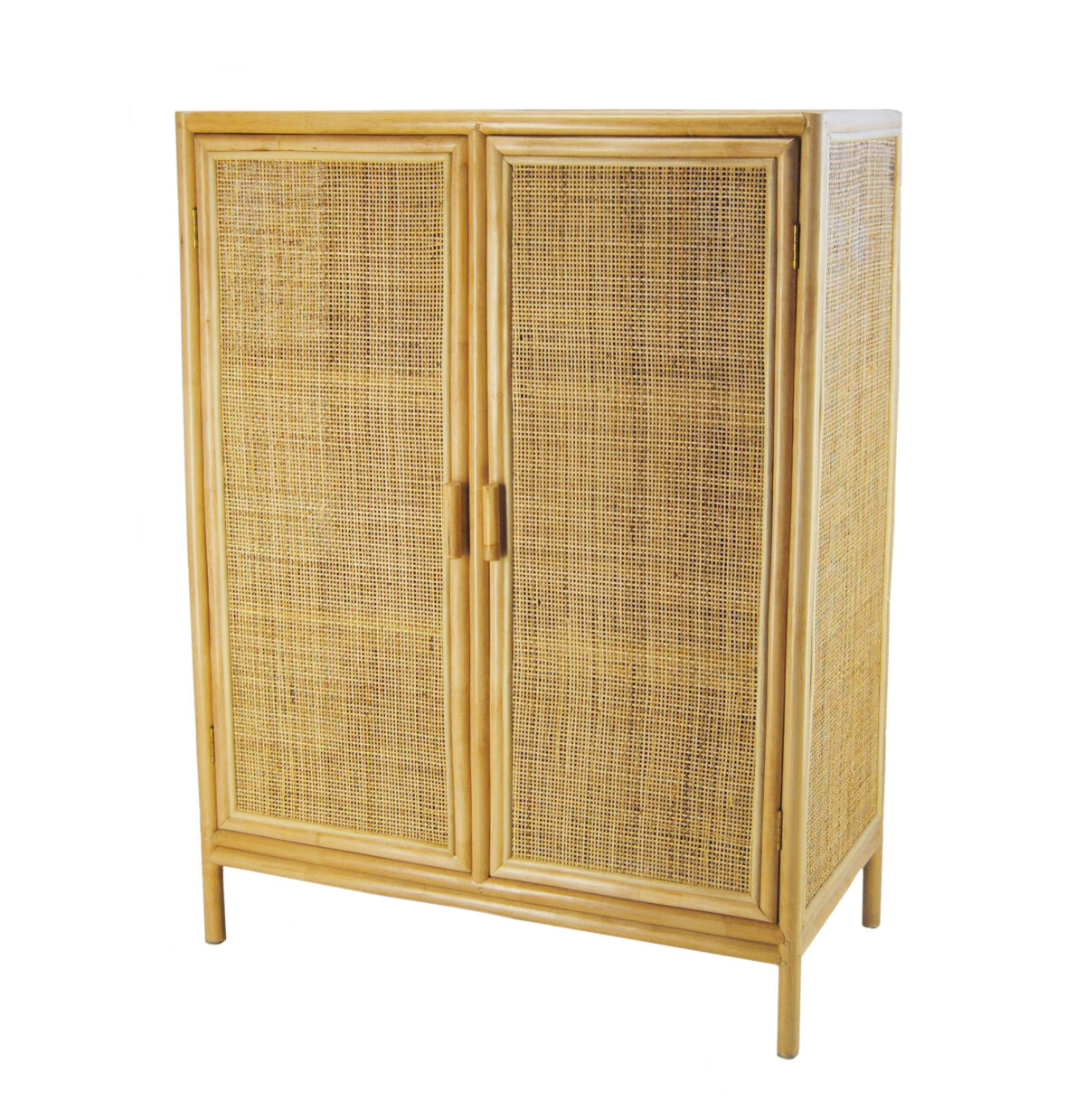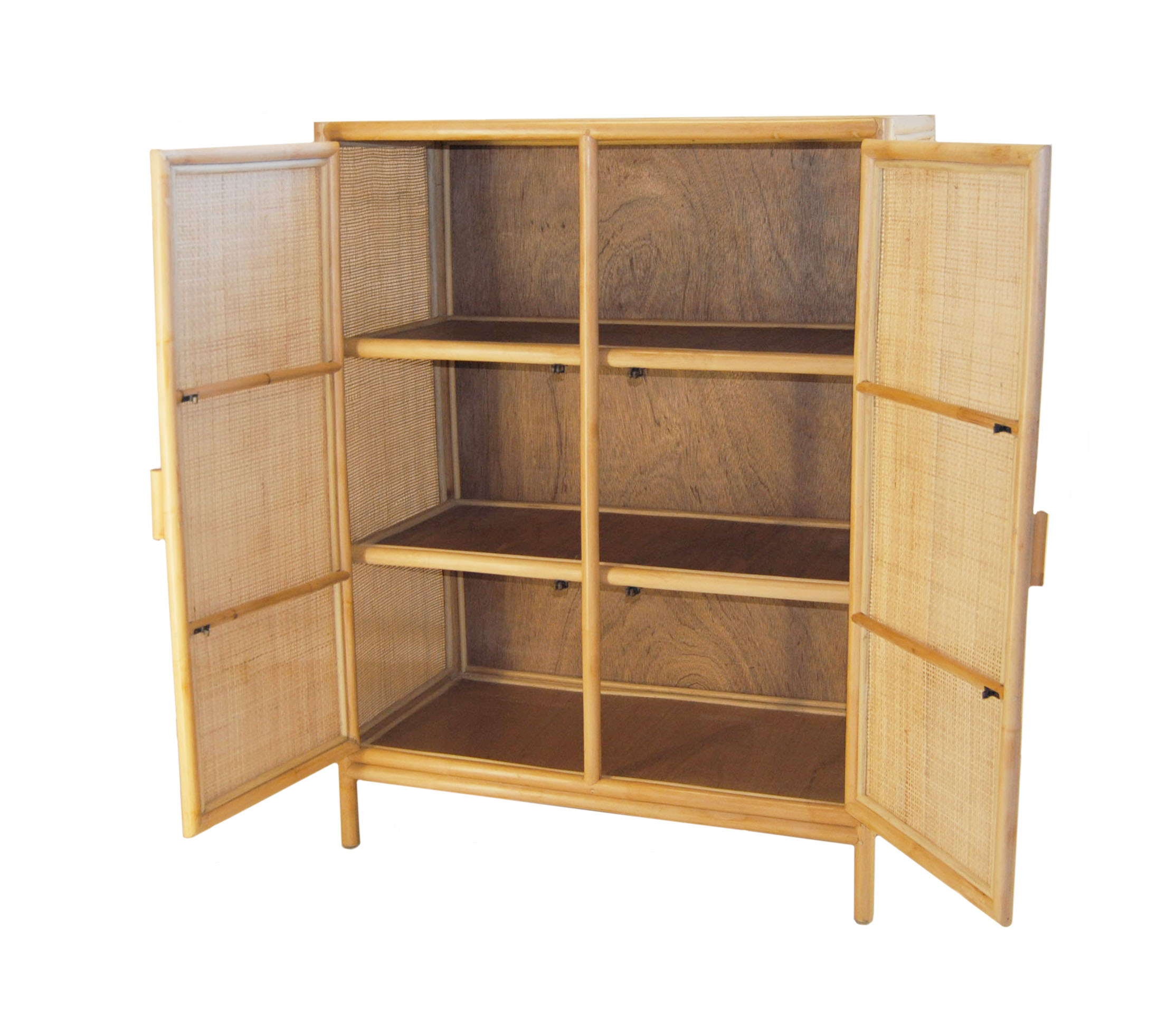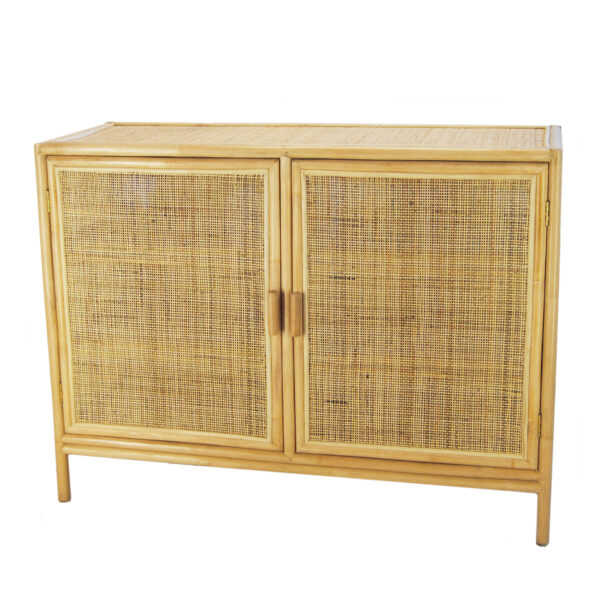 Hippe kast, handgemaakt van naturel rotan en open webbing.