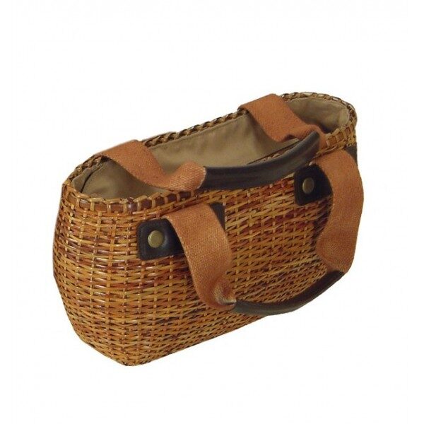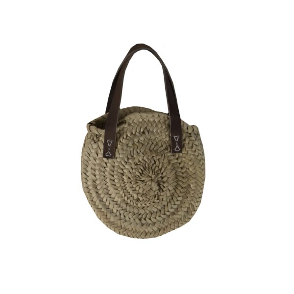 Leuk rieten kindertasje gemaakt van palmblad met leren handgreepjes.