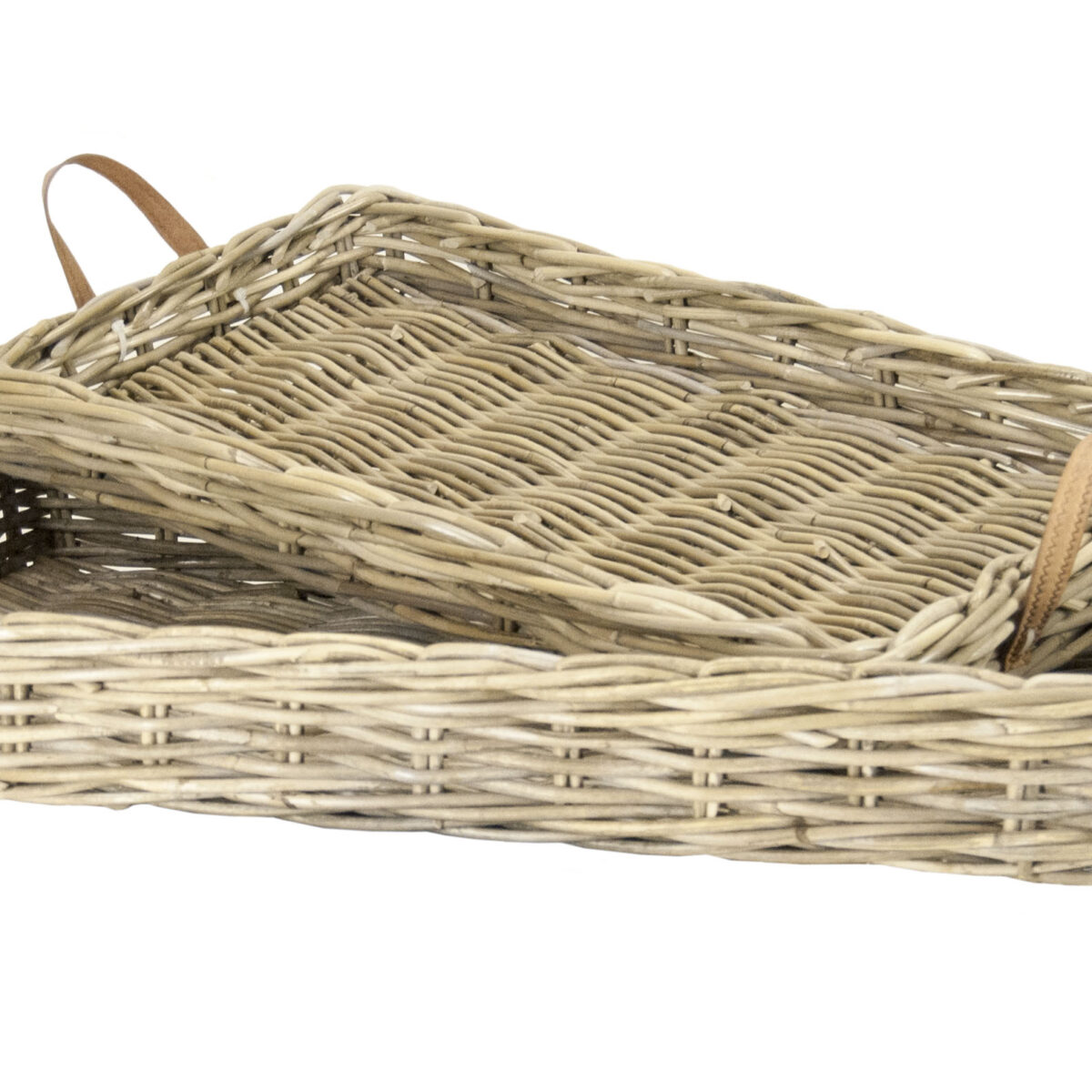 Vierkant rieten opbergmandje, gevlochten van rotan in Grey kleur. Het mandje heeft een lederen sluiting.