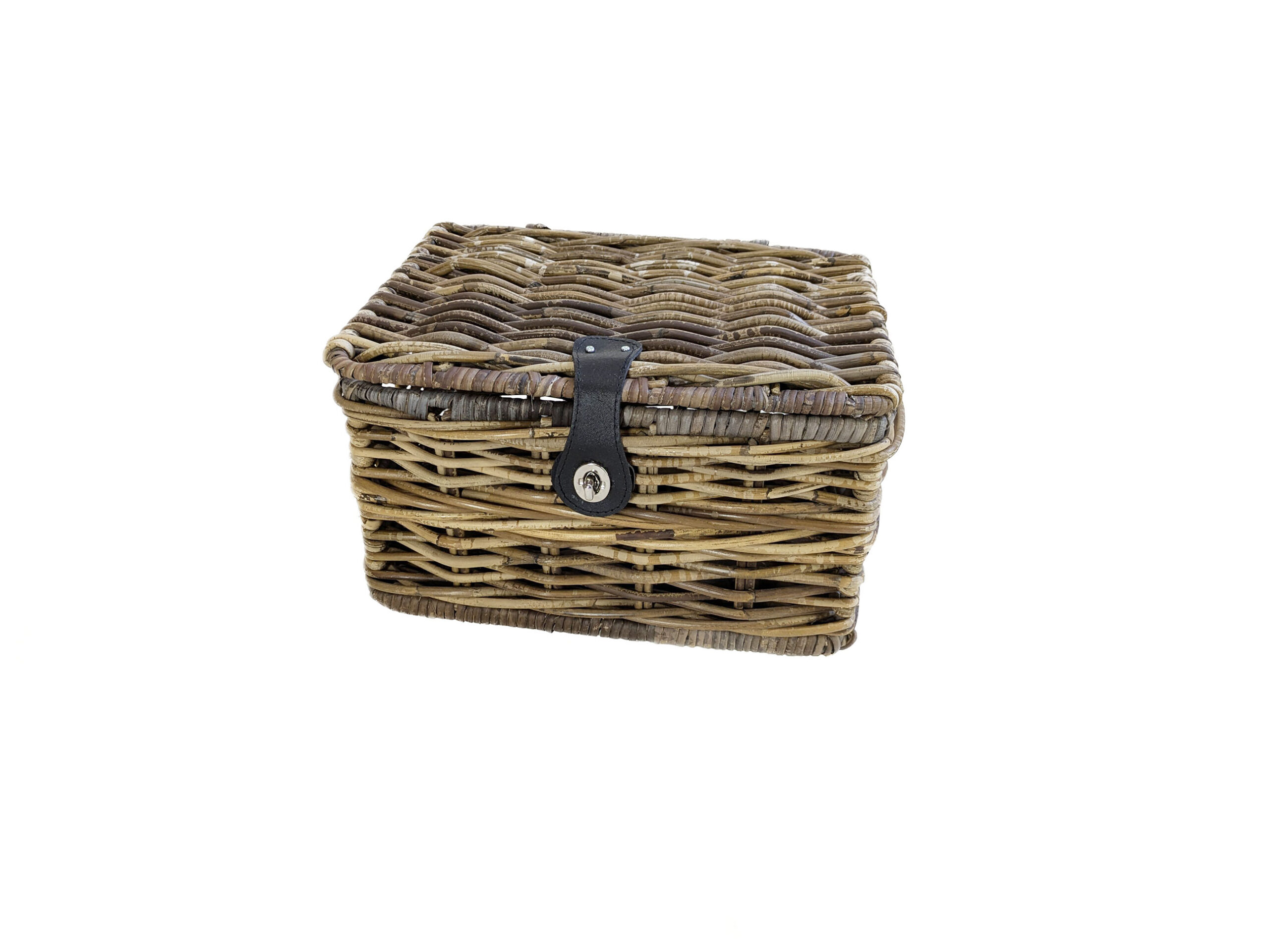 HomeMandenOpbergmanden Koffertje met leren sluiting in Brown Rotan