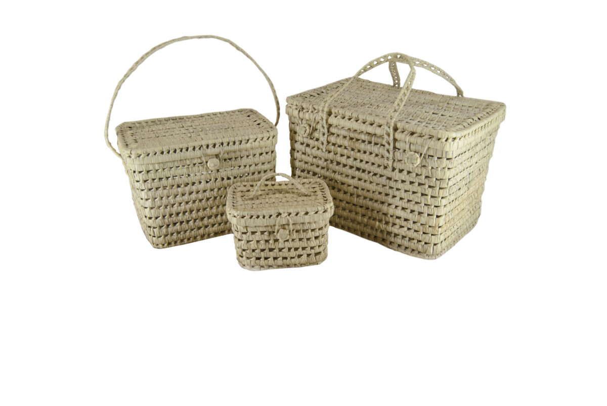 Leuke rieten opberg koffertjes gemaakt van palmblad.