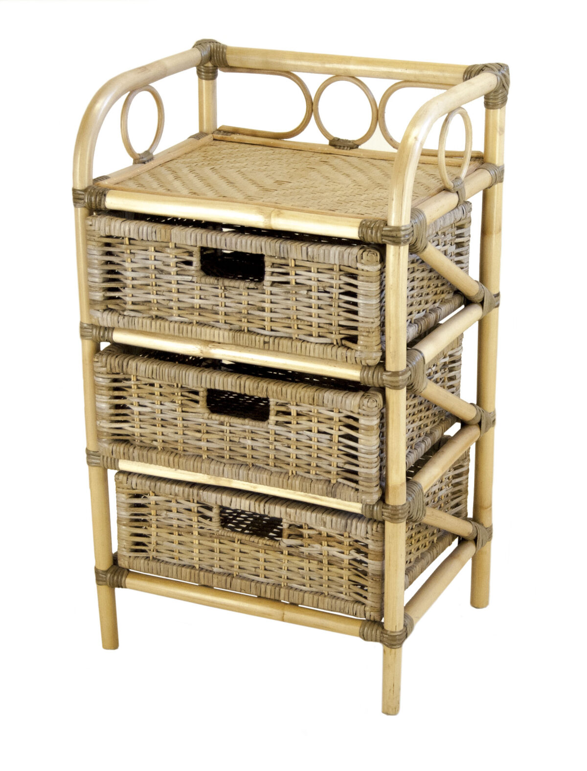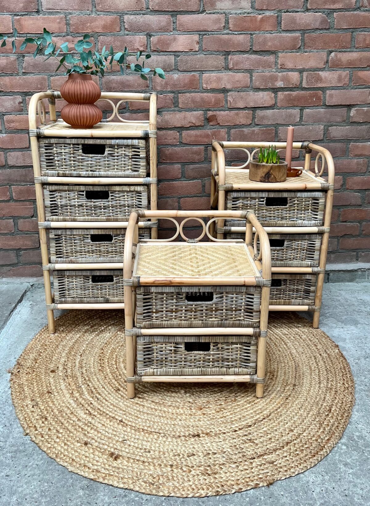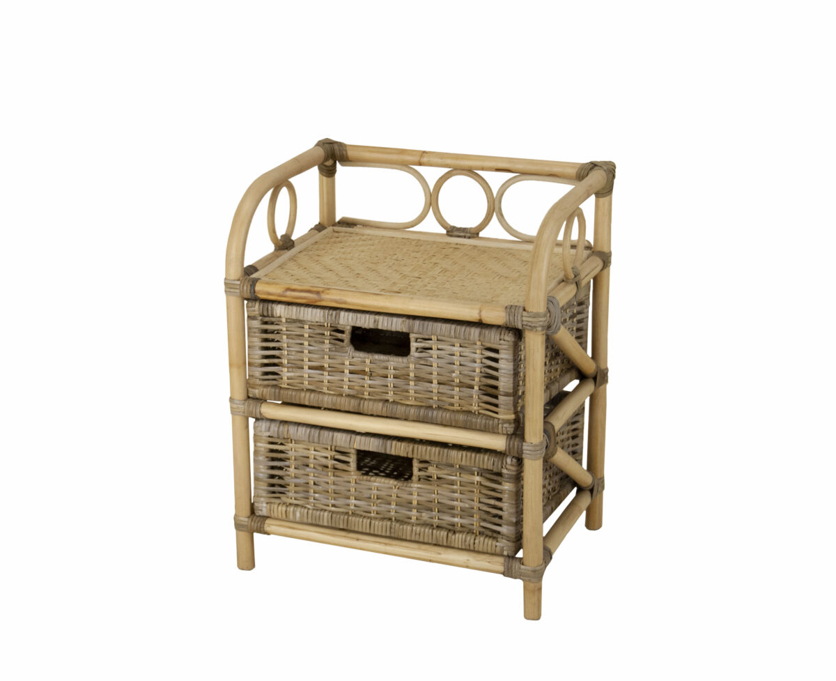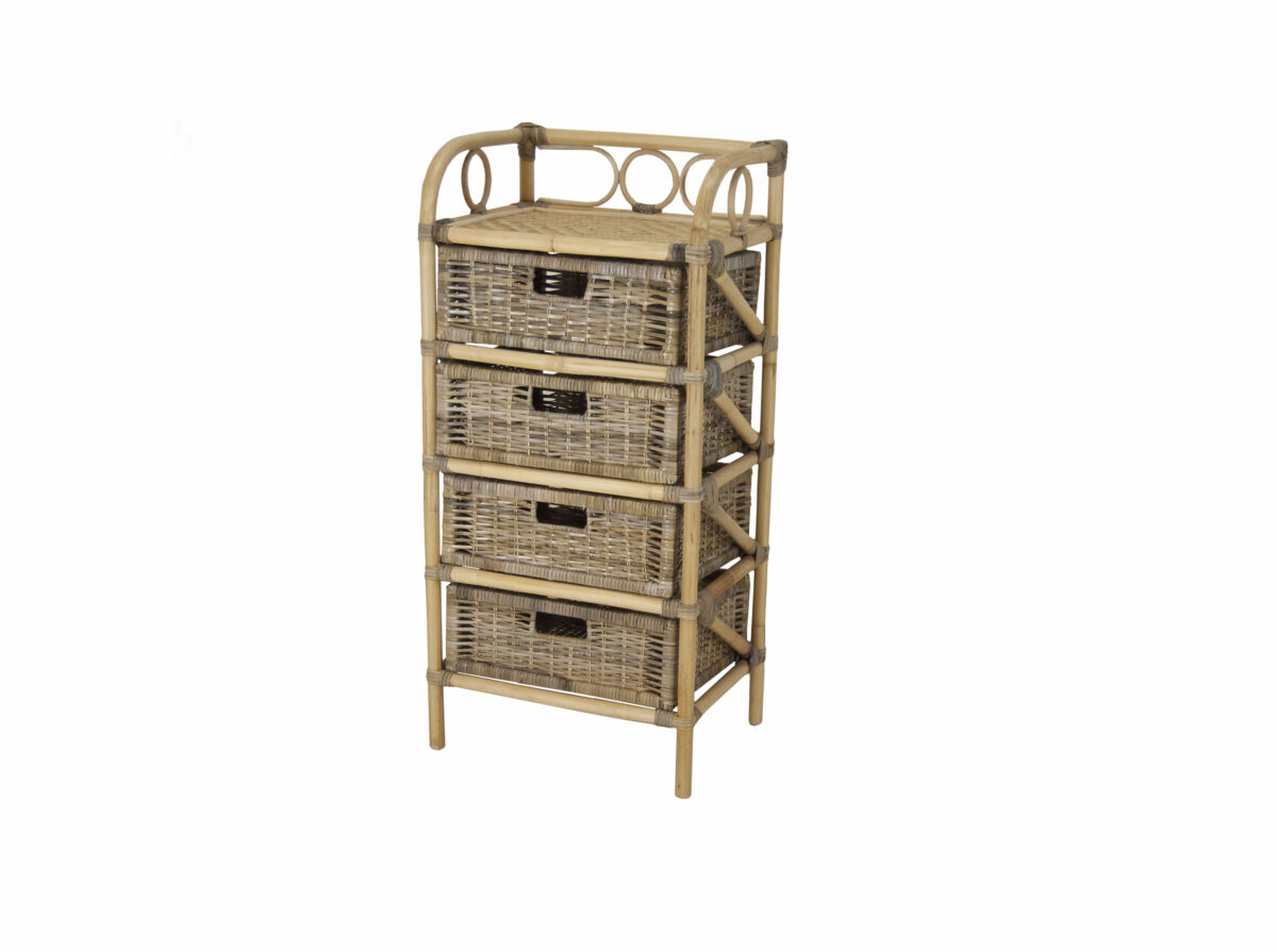 Het frame van de kast is gemaakt van naturel rotan. De lades van grey rotan.