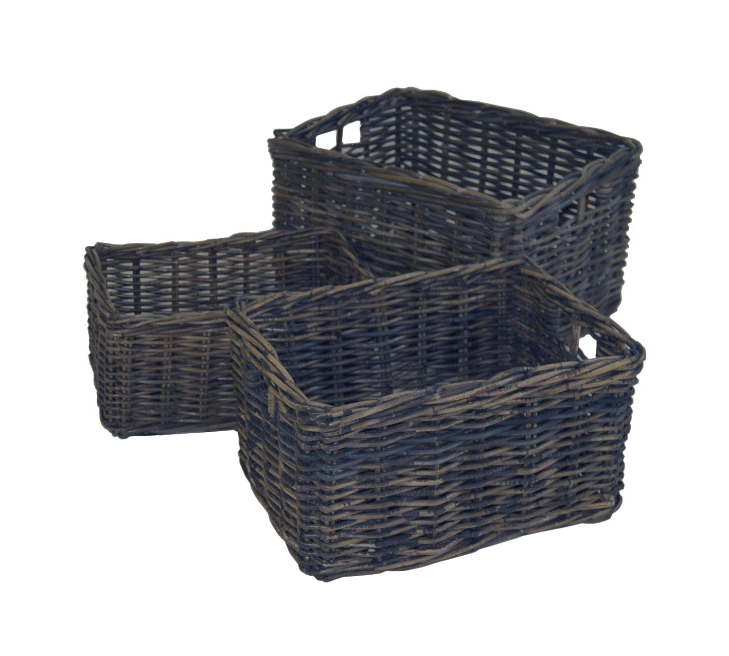 Rieten rechthoekige mand in Donker Grijs rotan.