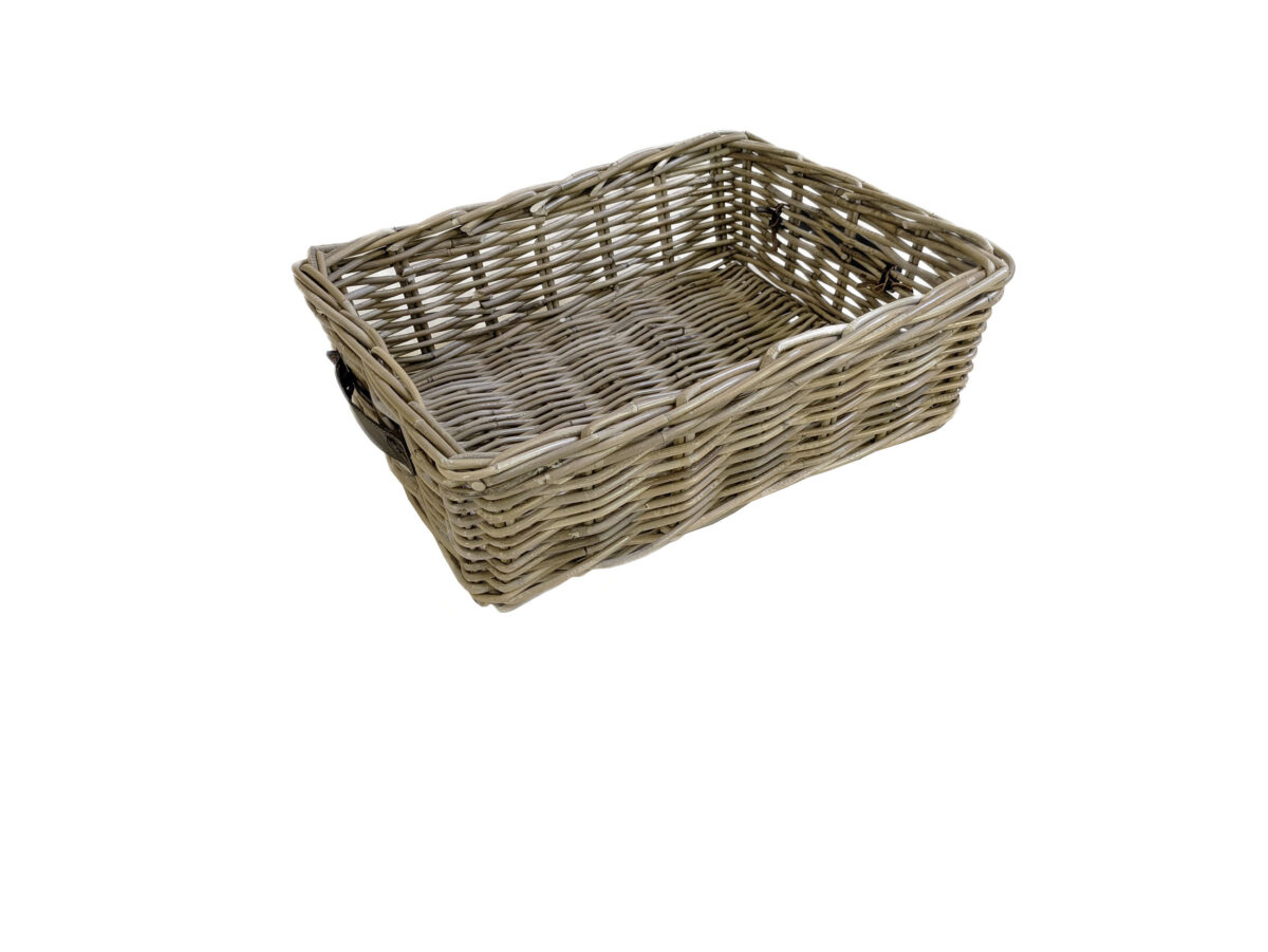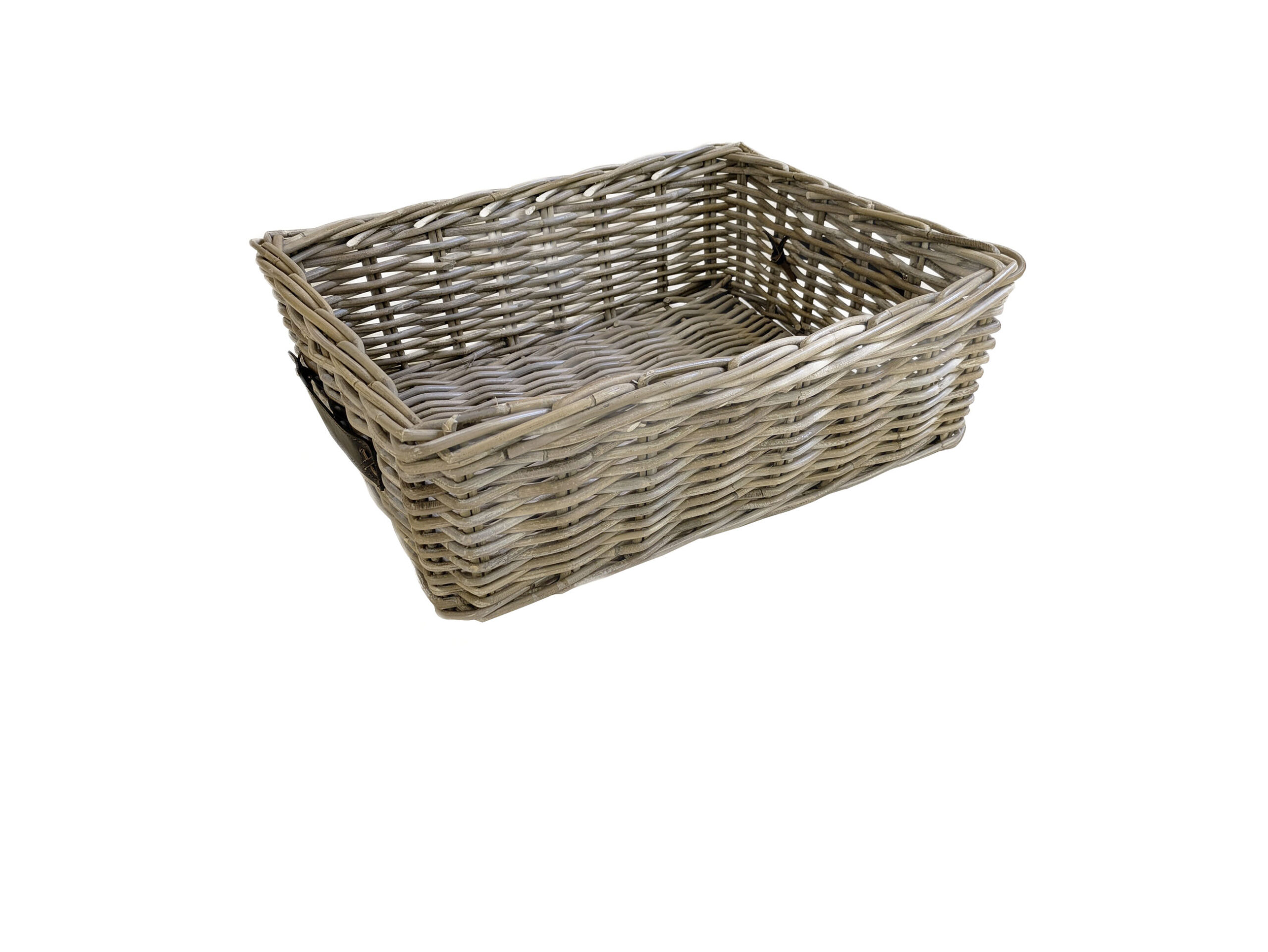 Mand gemaakt van Grey Rotan met leren handgrepen.