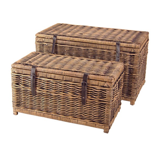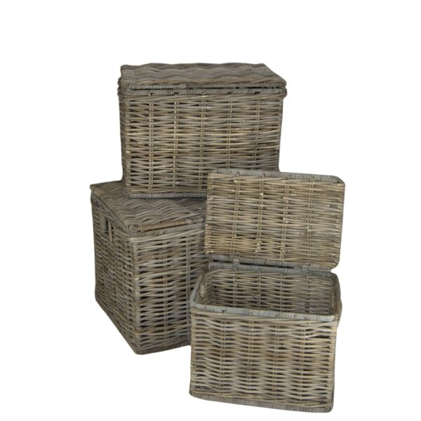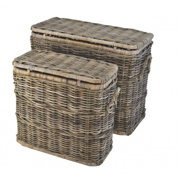 De mand is af te sluiten met 2 lederen riempjes. Handig in gebruik door de scharnieren in het deksel en de handgrepen aan de zijkant.