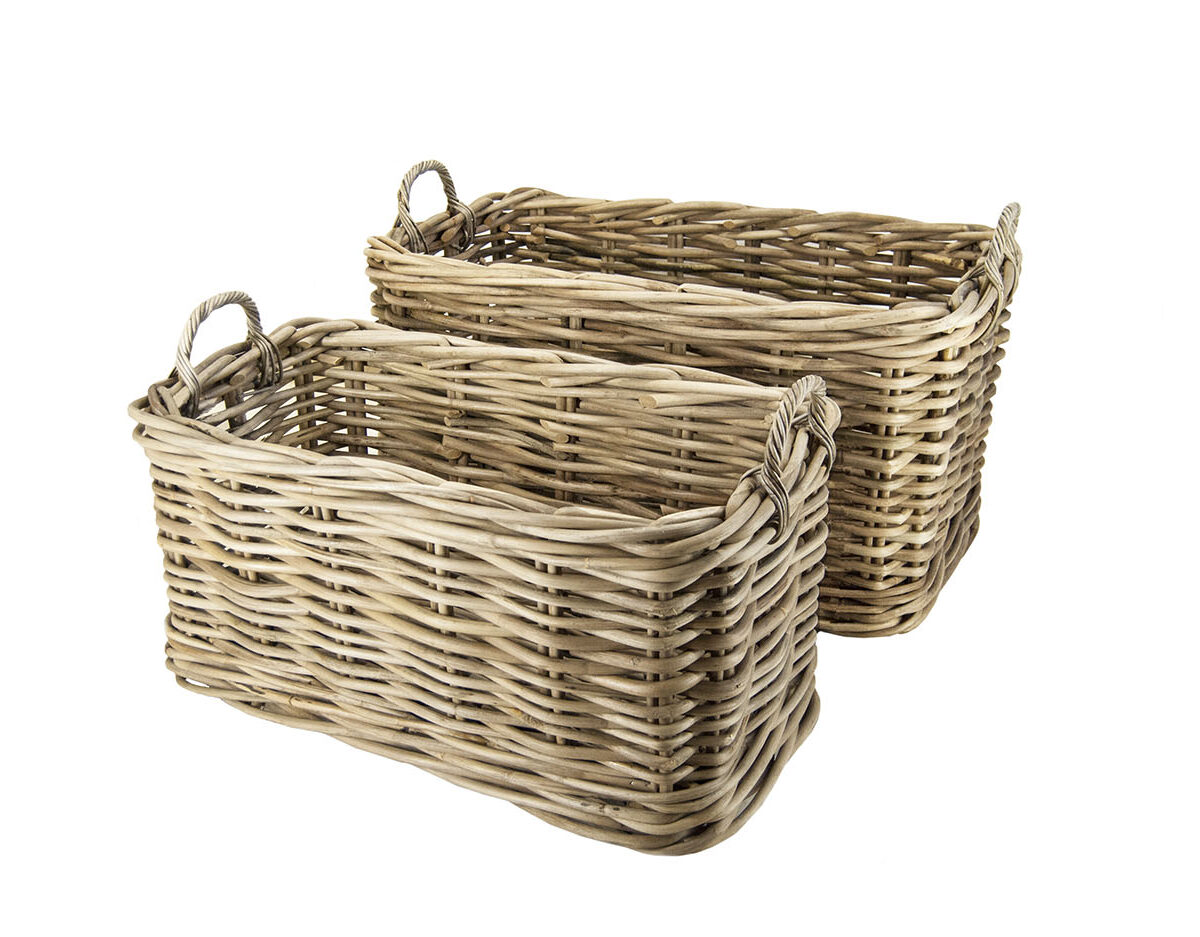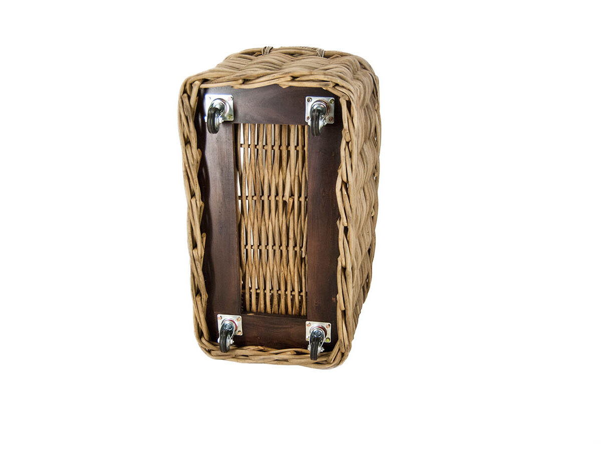 De rieten mand is gevlochten van fijn pitriet in loog kleur. Beiden vakken in de mand hebben een uitneembare binnenvoering / waszak.