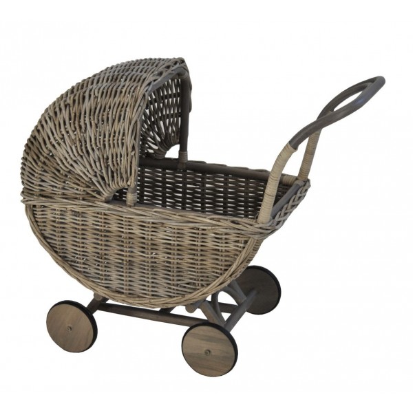 Classic model poppenwagen, gemaakt van rotan in Grey kleur.