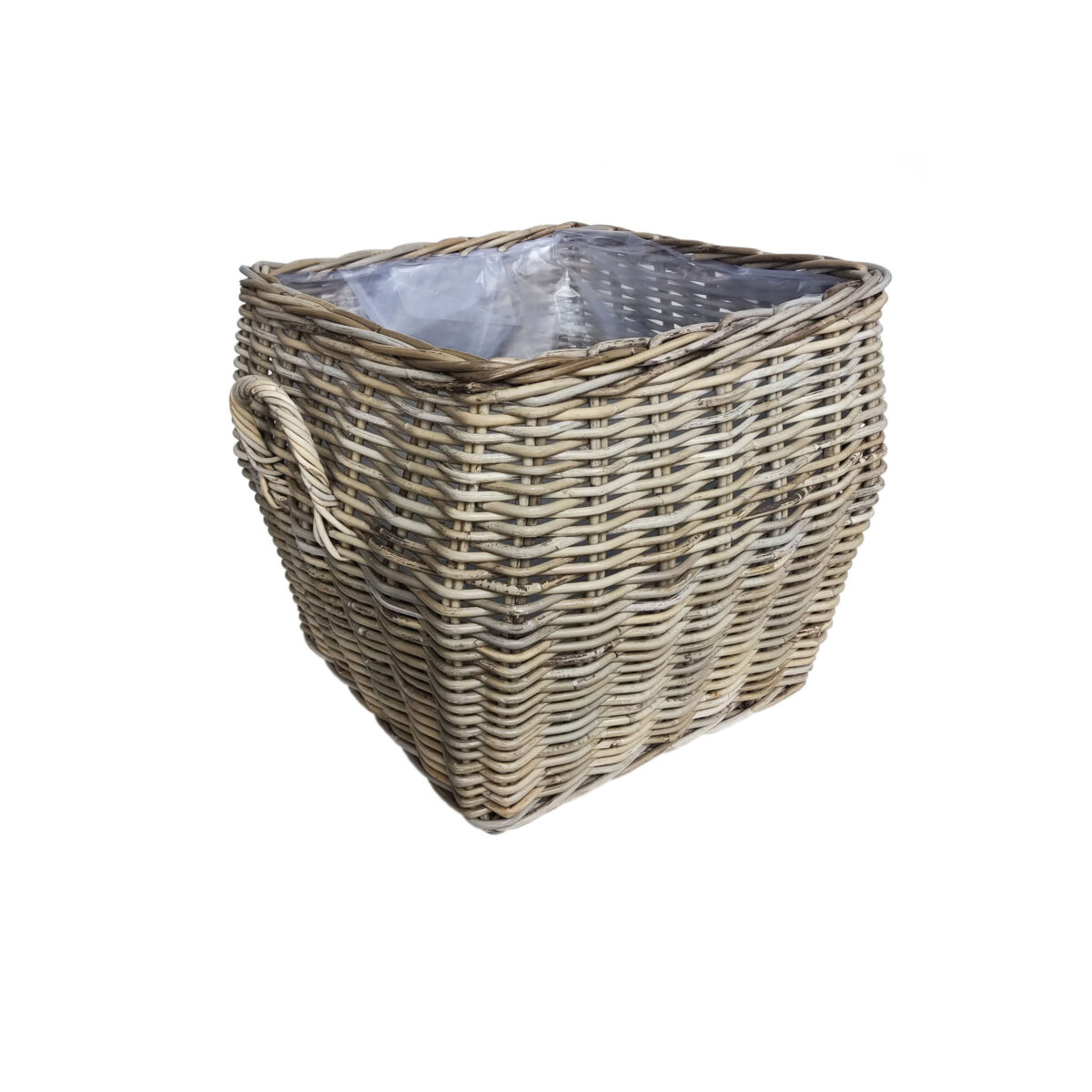 De robuuste rieten mand heeft een uitneembare binnenvoering / waszak.