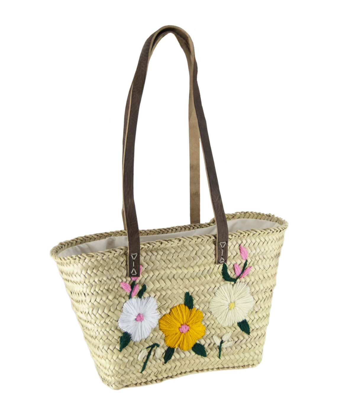 Met ecru gevoerde schoudertas met geborduurde bloemen