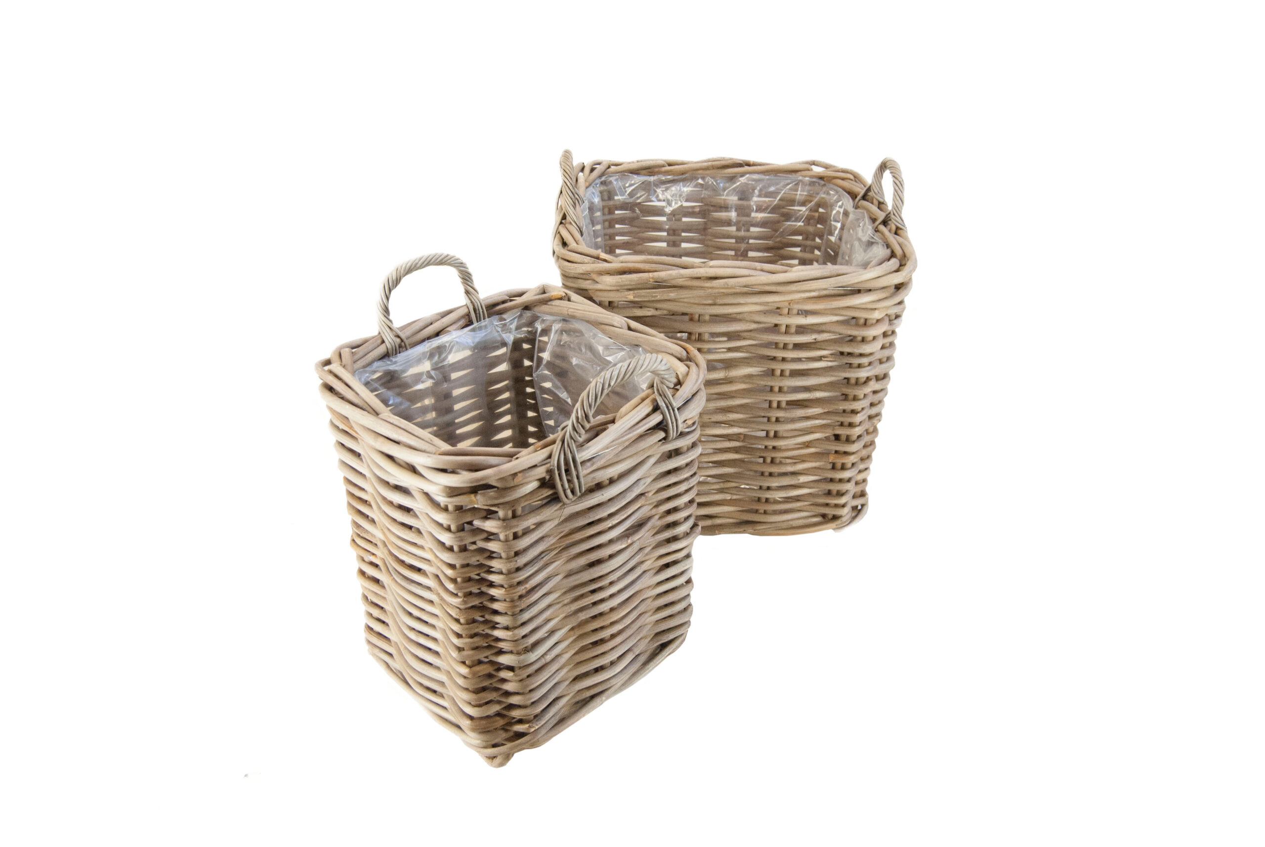 Set van 2 manden gevoerd met plastic, gemaakt van Grey CL Rotan