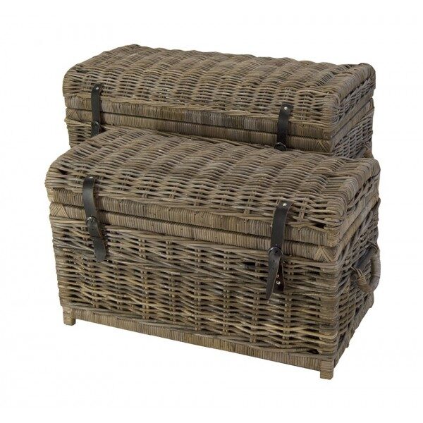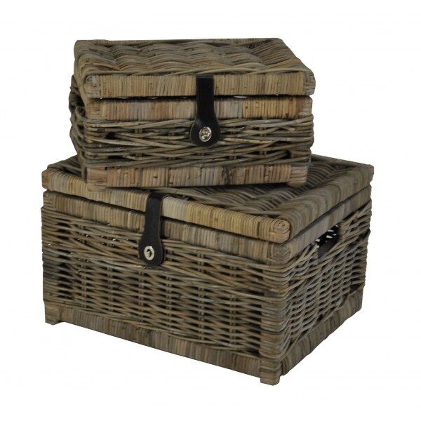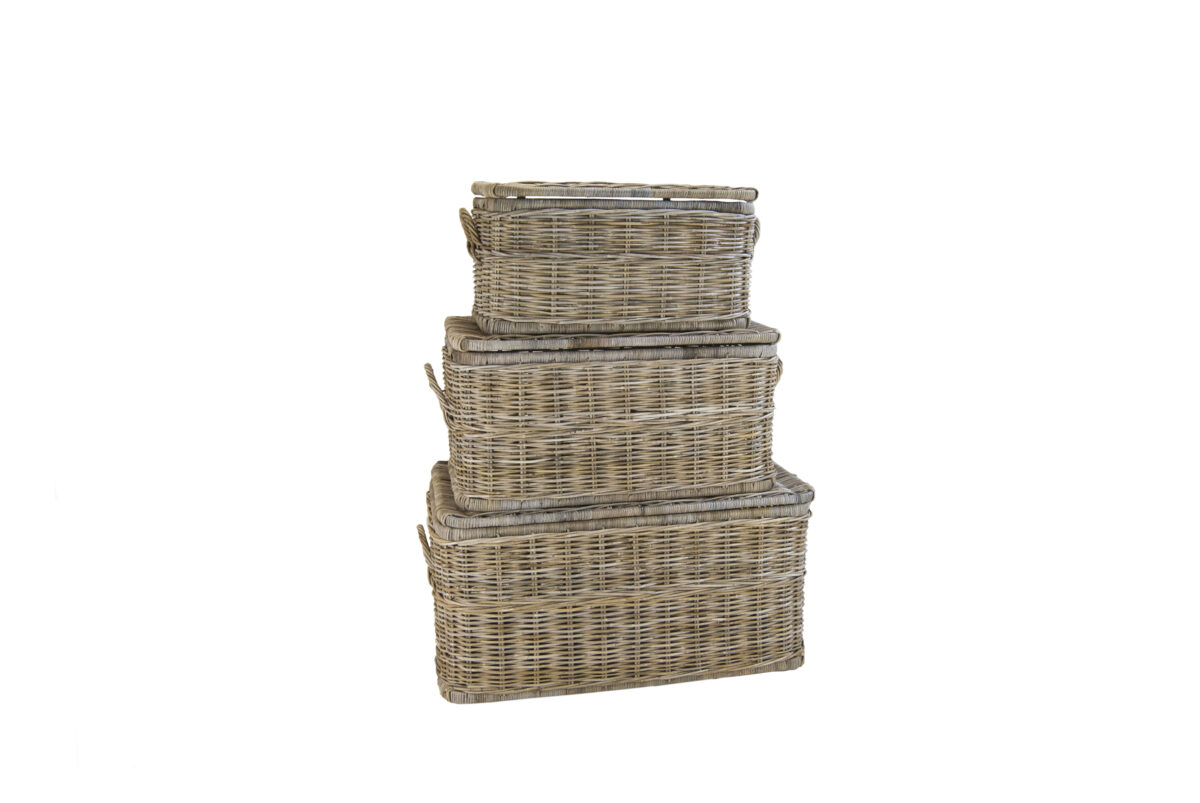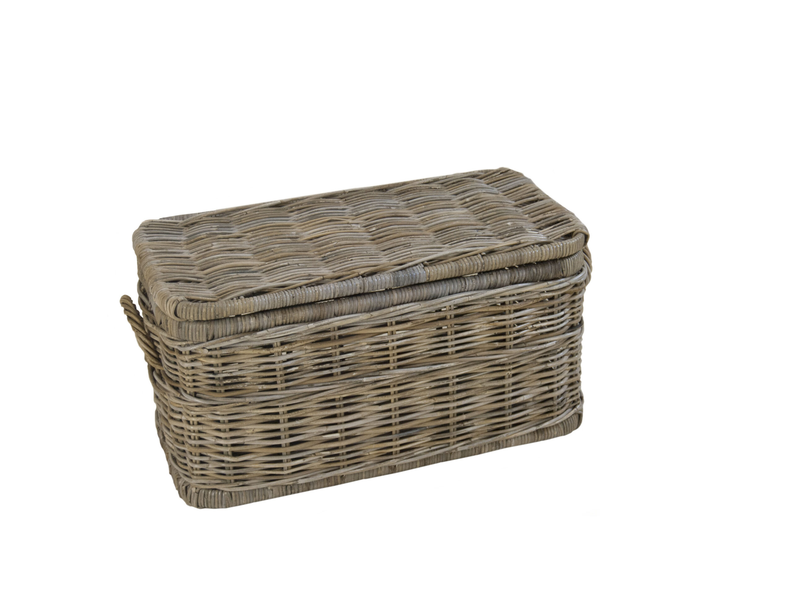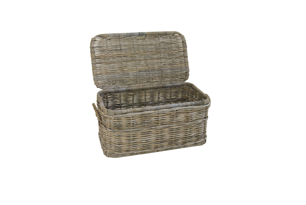 Robuuste rieten mand gemaakt van Grey rotan. Zeer gebruiksvriendelijk door de stevige scharnieren in het deksel en gemakkelijk verplaatsbaar door de handgrepen aan de zijkant.