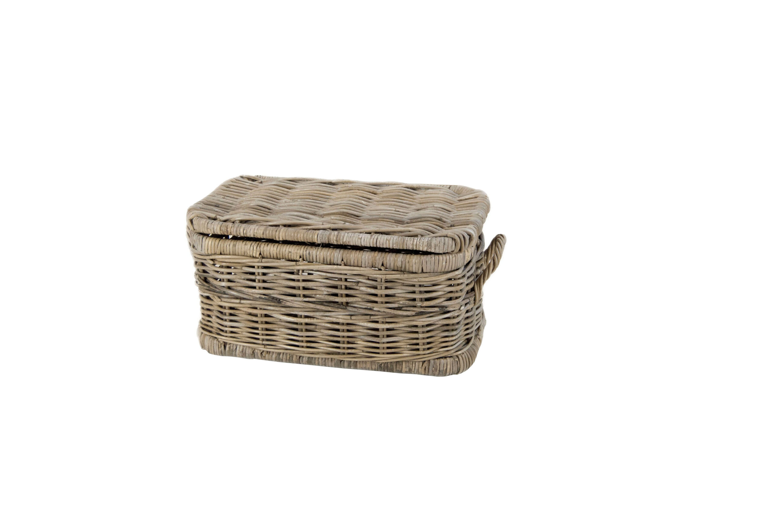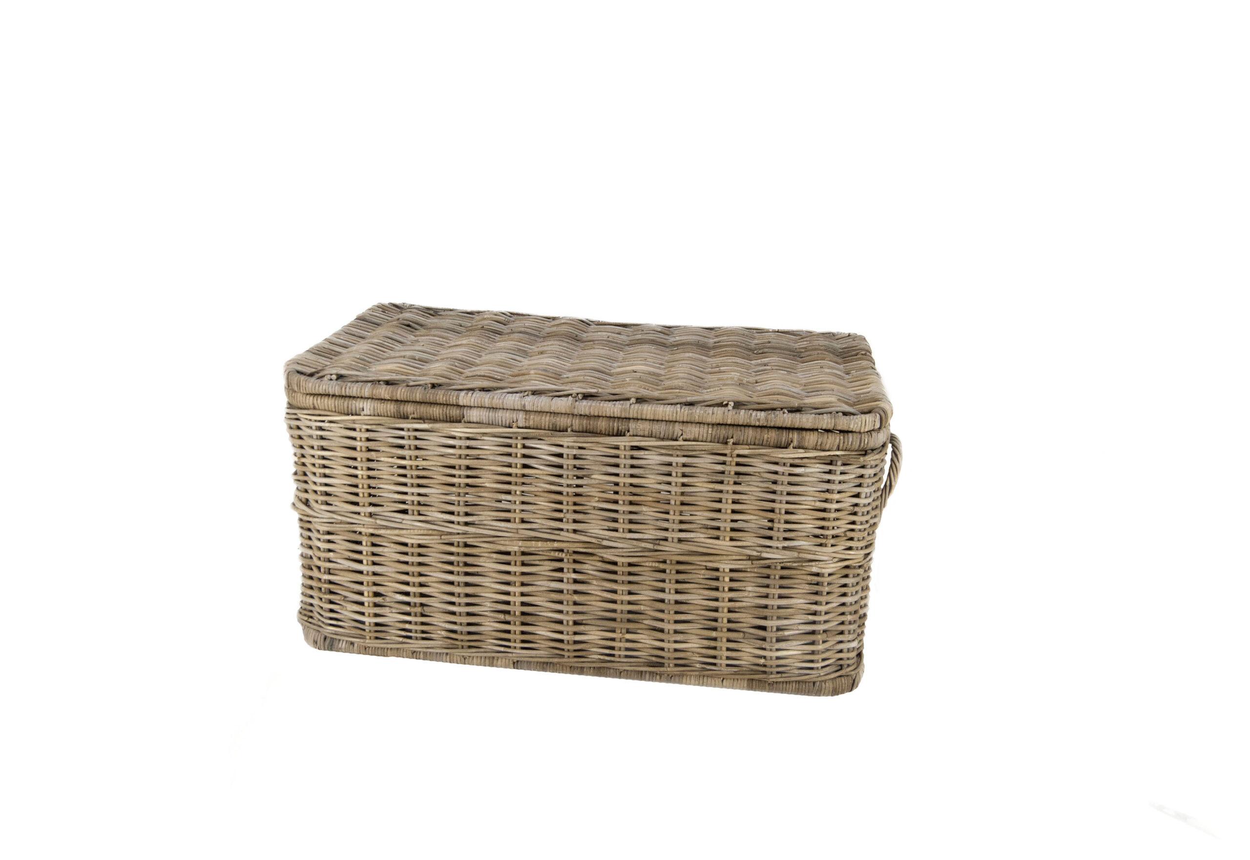 Robuuste  rieten mand gemaakt van Grey rotan. Zeer gebruiksvriendelijk door de stevige scharnieren in het deksel en gemakkelijk verplaatsbaar door de handgrepen aan de zijkant.
