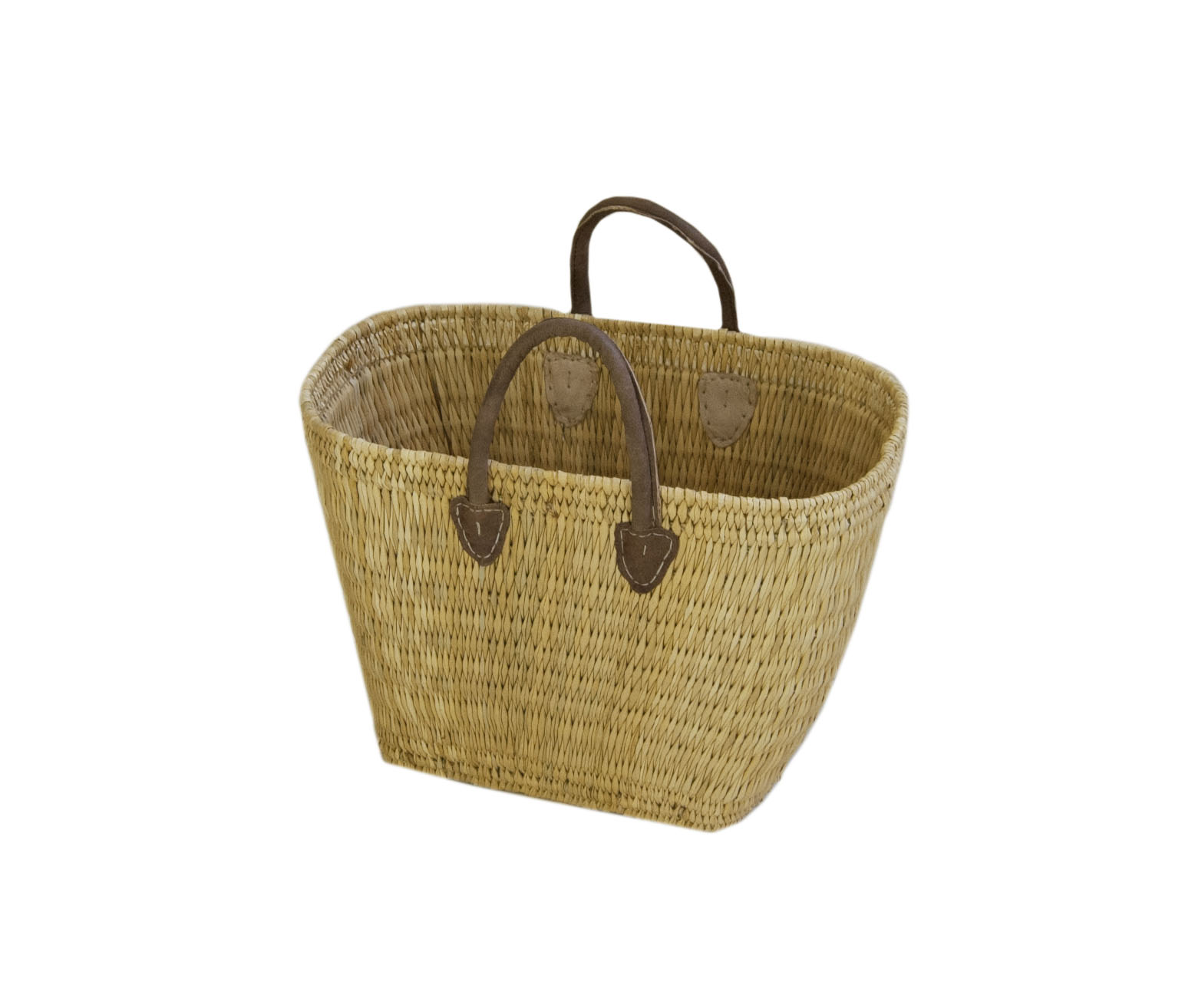 Het model van de rieten tas loopt iets taps.