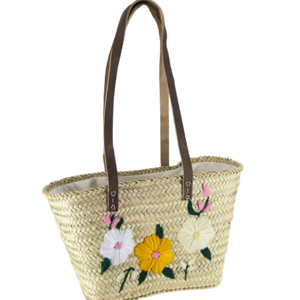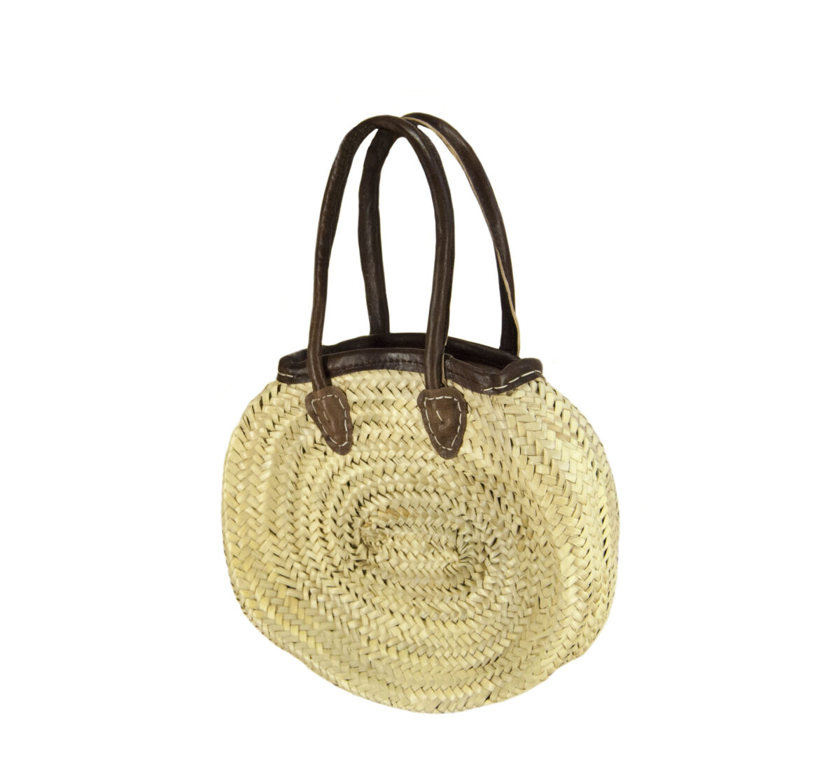 Hippe tas met lederen handvatten en randje