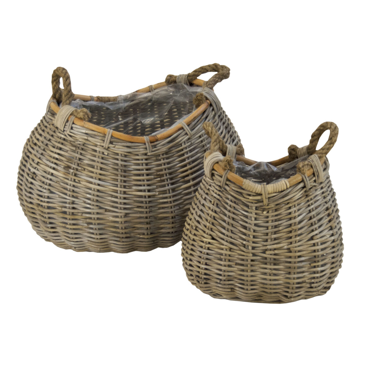 De mand is gemaakt van stevig Grey rotan en heeft een plastic binnenvoering.