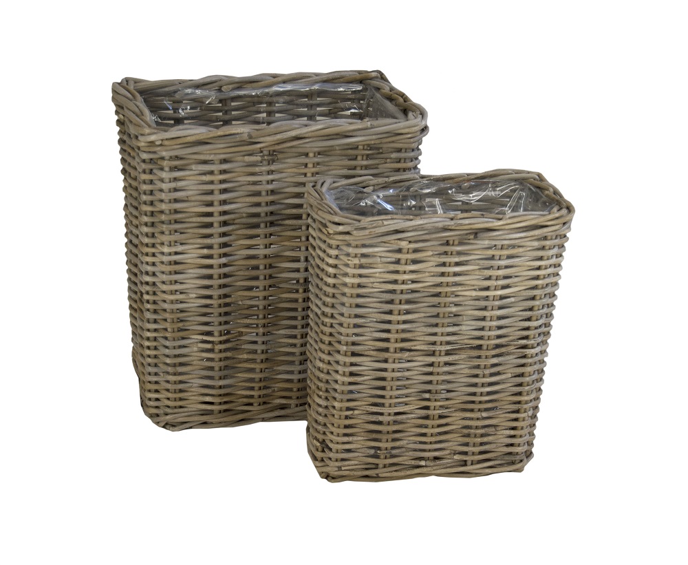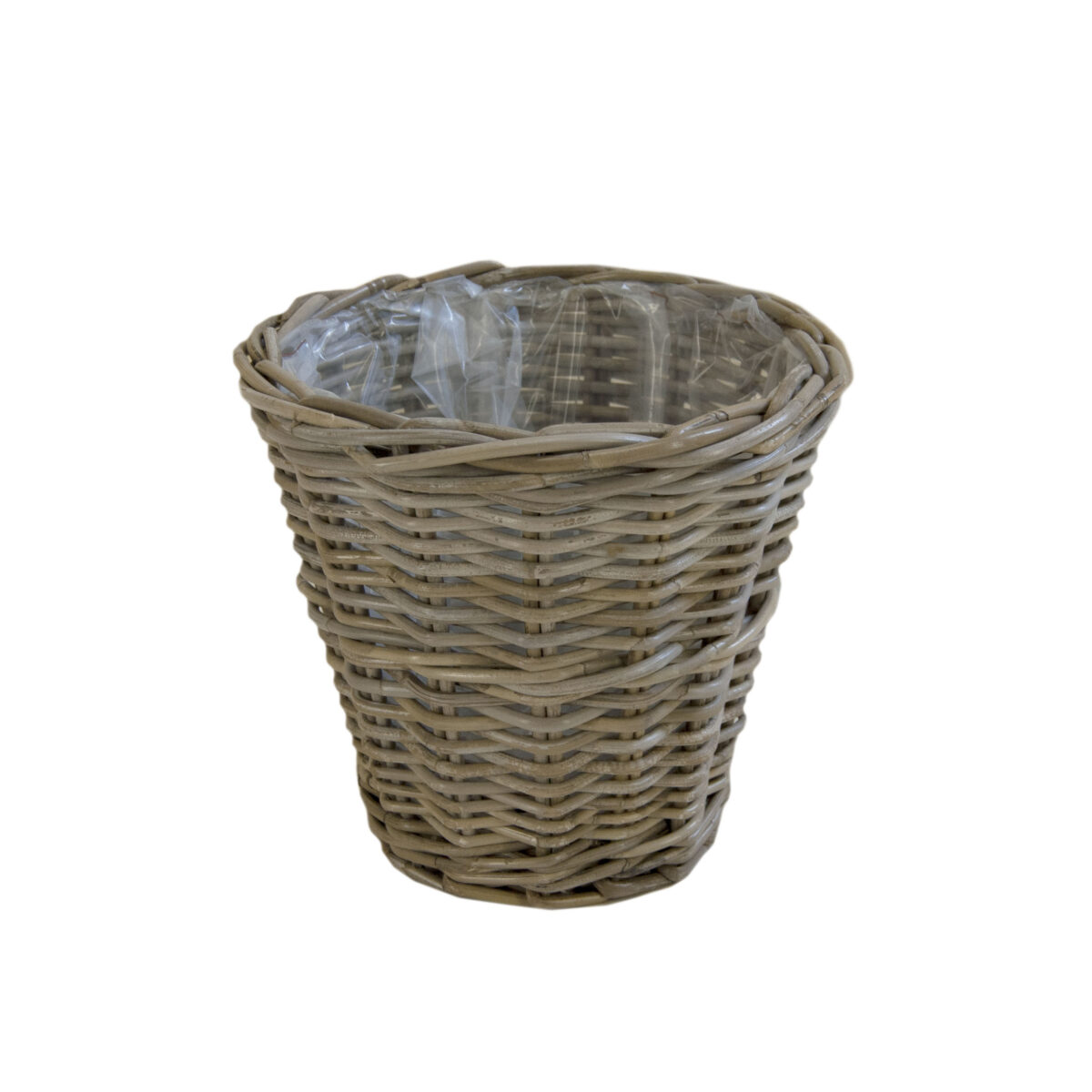 De mand is gemaakt van Grey rotan en is met plastic gevoerd.