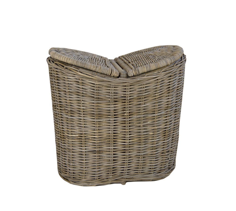 Met deze rieten wasmand kunt u direct gemakkelijk de was sorteren omdat hij twee aparte vakken heeft.
