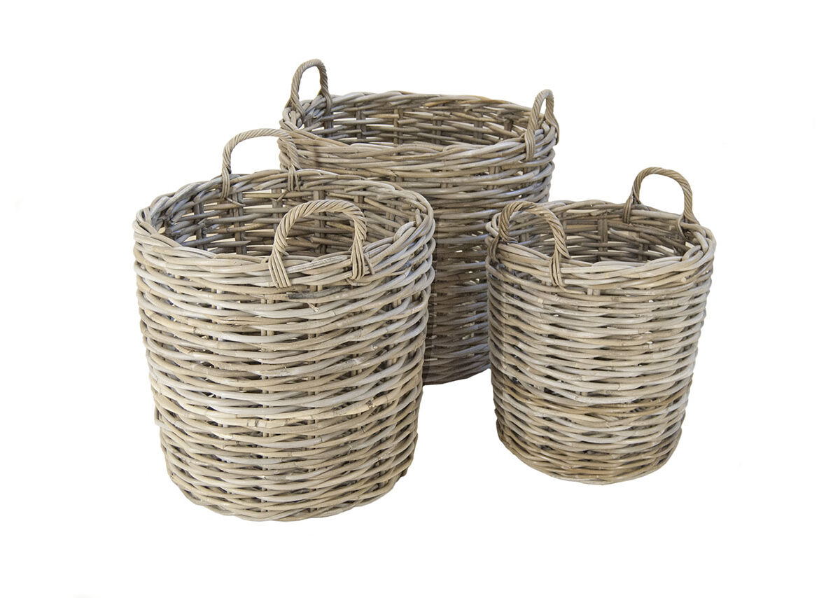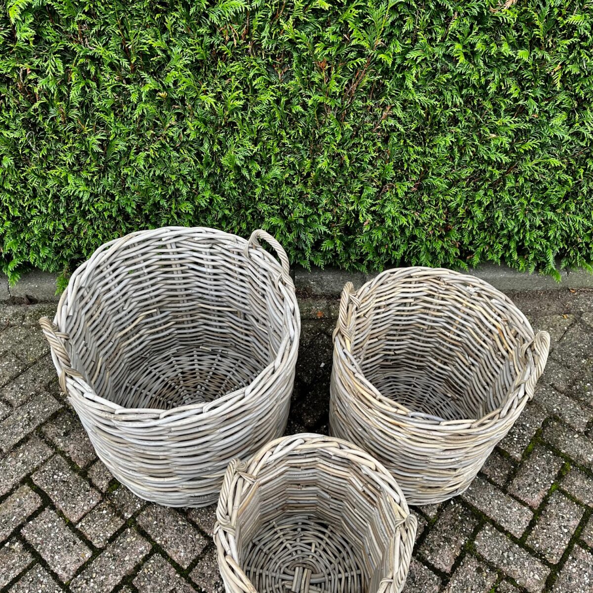 Een smalle rechthoekige wasmand gemaakt van rotan in Grey kleur.