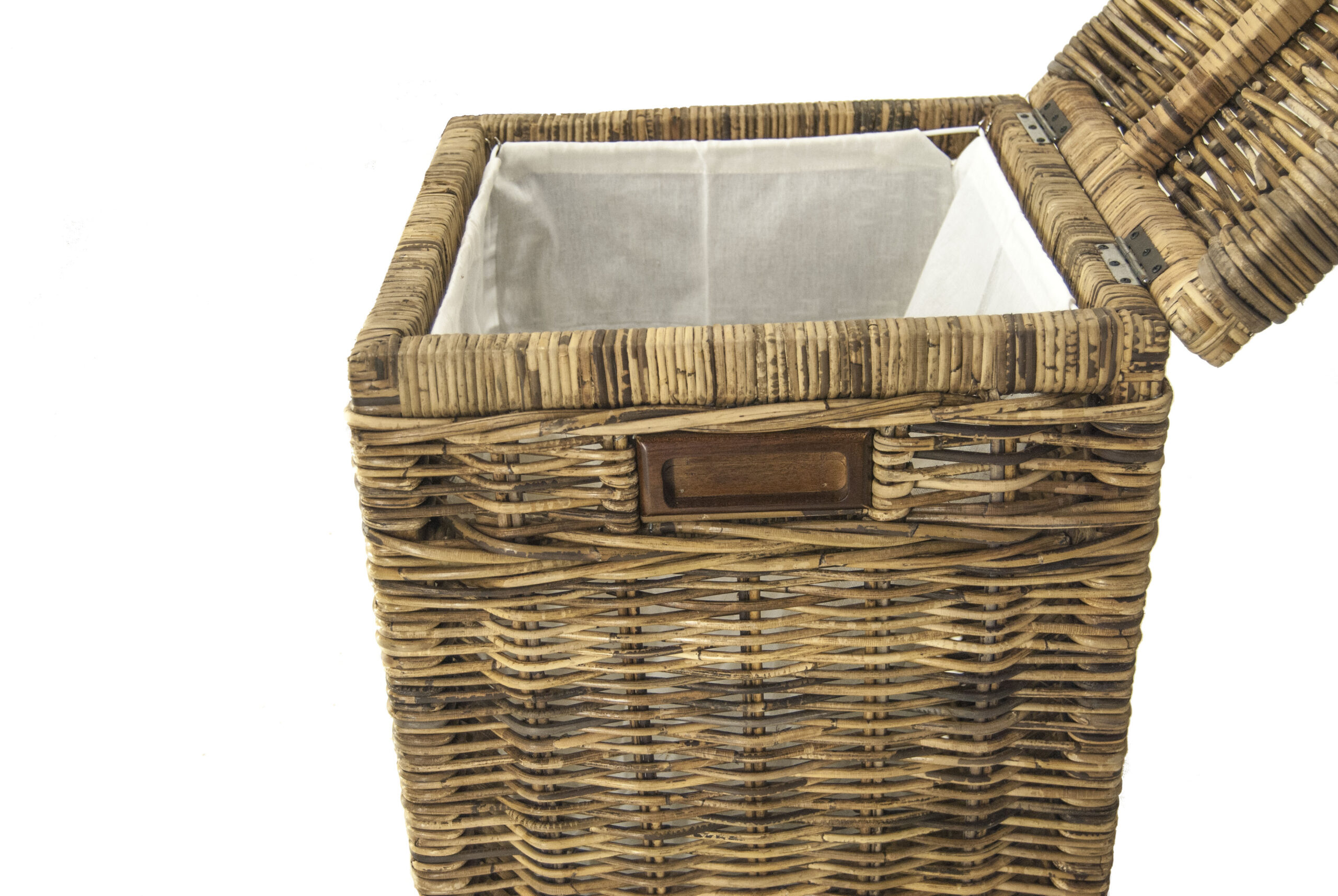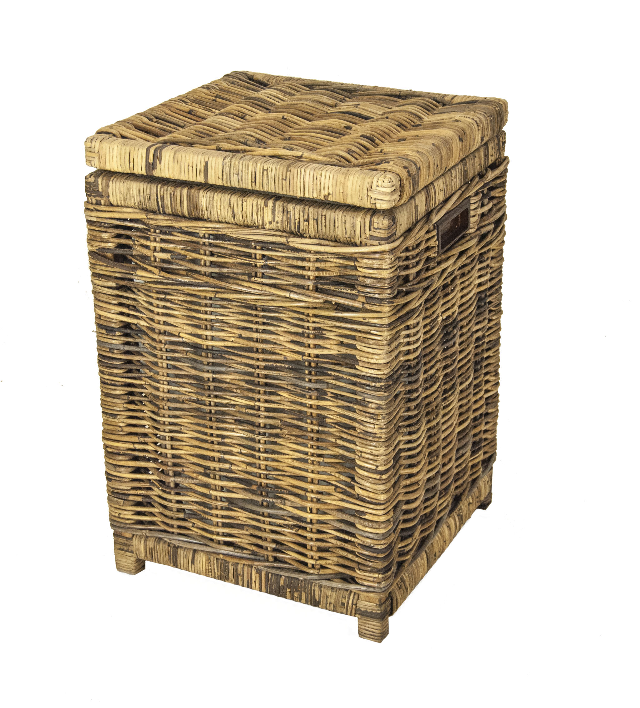 Robuuste vierkante wasmand gemaakt van rotan in Brown kleur.
